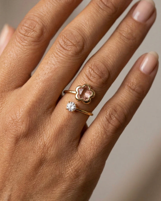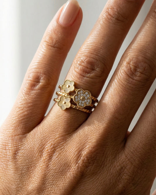 Anel Ajustável Trevo Brilhantes Dourado ou Prateado