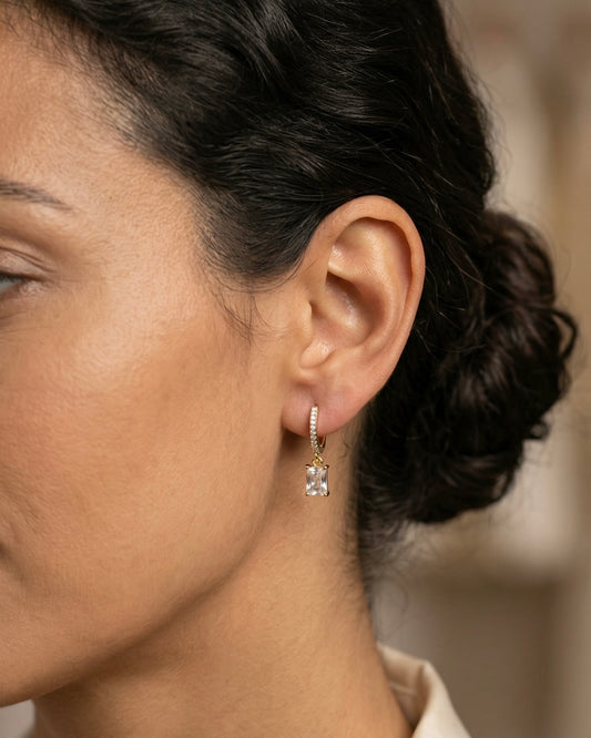 Brincos Retangulares Brilhantes Dourado ou Prateado