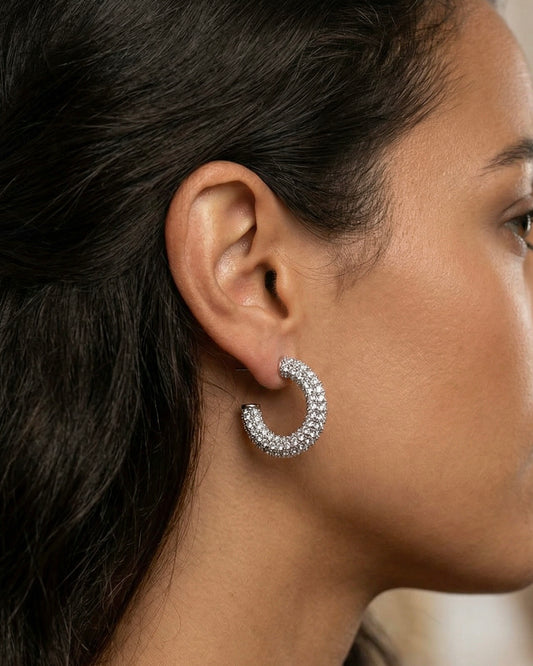 Brincos Coração Brilhantes Dourado ou Prateado