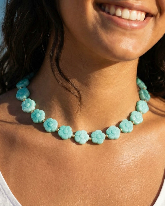 Colar Bubbles Flores Bege, Azul ou Amarelo