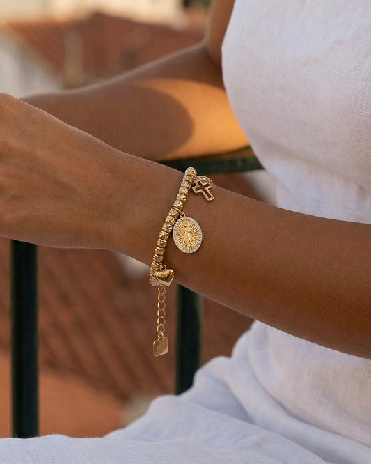 Pulseira Riviera com Pendente Dourado ou Prateado