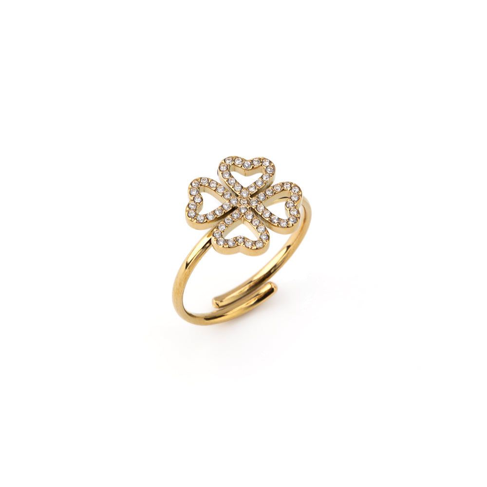 Anel Ajustável Trevo Brilhantes Dourado ou Prateado