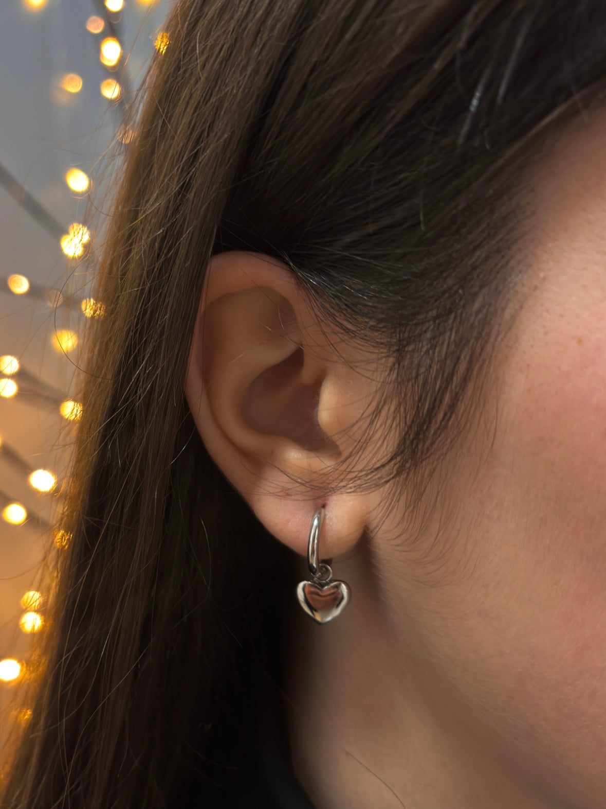 Eleva o teu estilo com os Brincos Pendente Coração Prateado da Dise Jewelry. Produzidos em aço inoxidável 316L, estes brincos combinam durabilidade, brilho e design romântico, sendo ideais tanto para o dia a dia como para ocasiões especiais.