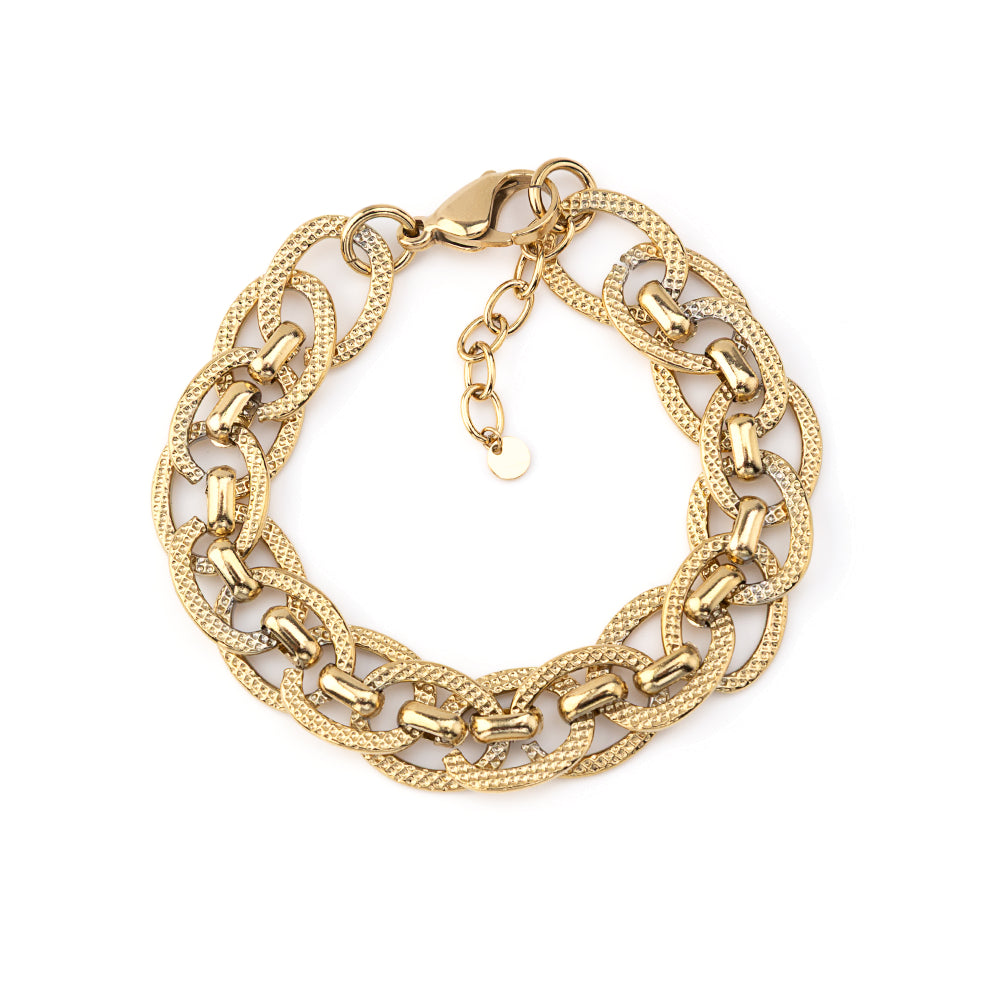 A Pulseira Corrente Cheia Dourado ou Prateado da Dise Jewelry é uma peça sofisticada com design clássico de corrente que combina estilo e robustez num só acessório. Confeccionada em aço inoxidável resistente à água e hipoalergénico, esta pulseira proporciona conforto, durabilidade e um brilho elegante que realça qualquer look — desde os mais casuais aos mais formais. Os elos bem trabalhados conferem um acabamento distintivo, enquanto a opção de cores em dourado ou prateado permite escolher o tom que melhor se adapta ao teu estilo ou combinar com outras peças da tua coleção para um visual coordenado e moderno.